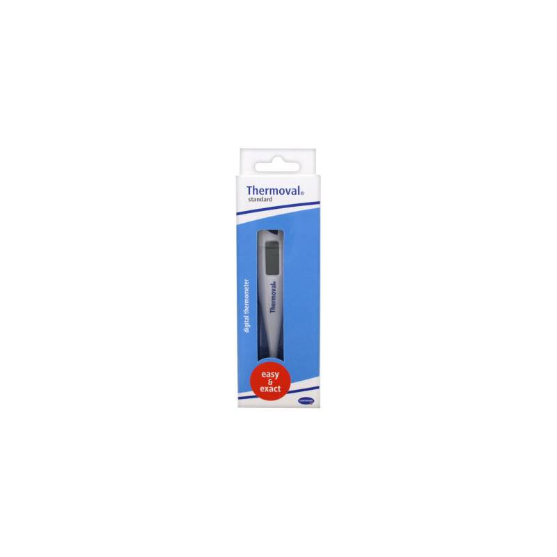 The Thermoval Classic is a digital, waterproof thermometer from Hartmann with an acoustic signal when a measurement is ready and when the thermometer is ready for use. This thermometer also has a memory storage for the last measurement taken and has an extra large display. Acoustic signal. Memory function. Switches off automatically. Battery check. 3 years manufacturer's warranty.