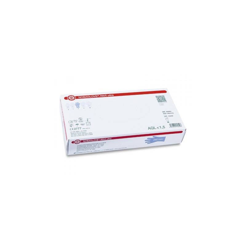 NOBAGLOVE®-Nitril ultra are powder-free, medical examination and protective gloves made of nitrile rubber. The non-sterile, blue-violet disposable gloves can be worn on the left or right side. They are used for performing medical examinations, for diagnostic and therapeutic purposes, handling contaminated medical materials, to protect against cross-contamination, but also for handling chemicals, in medicine, nursing or in the laboratory. They are approved for contact with food.